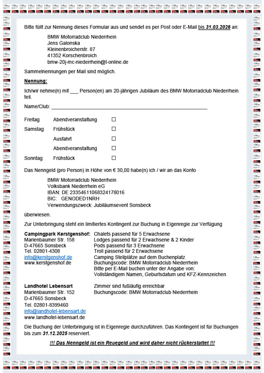 Druckversion - Nennungs Formular 20 Jahre Feier